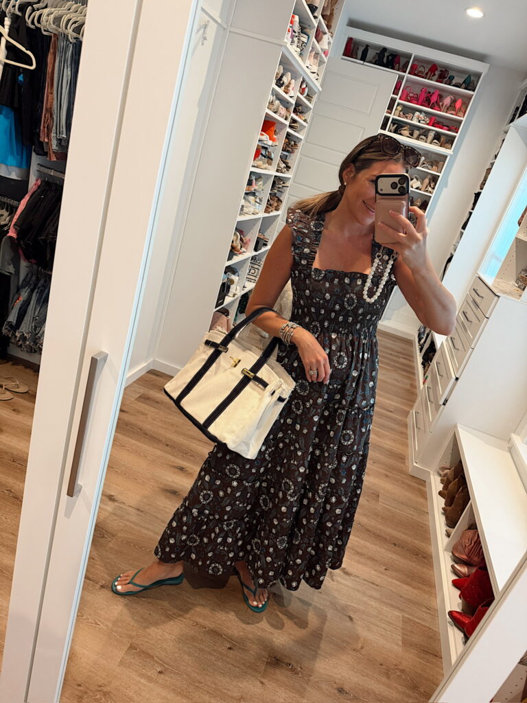 In a small Ellie nap dress, sandals, sunglasses and accessories- fits tts. Shop the items here!