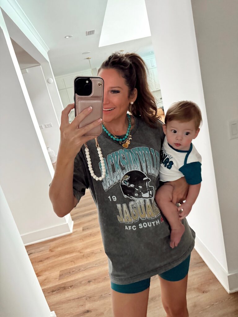 Mommy and Storm jaguars game day at home outfits! Shop the items here!