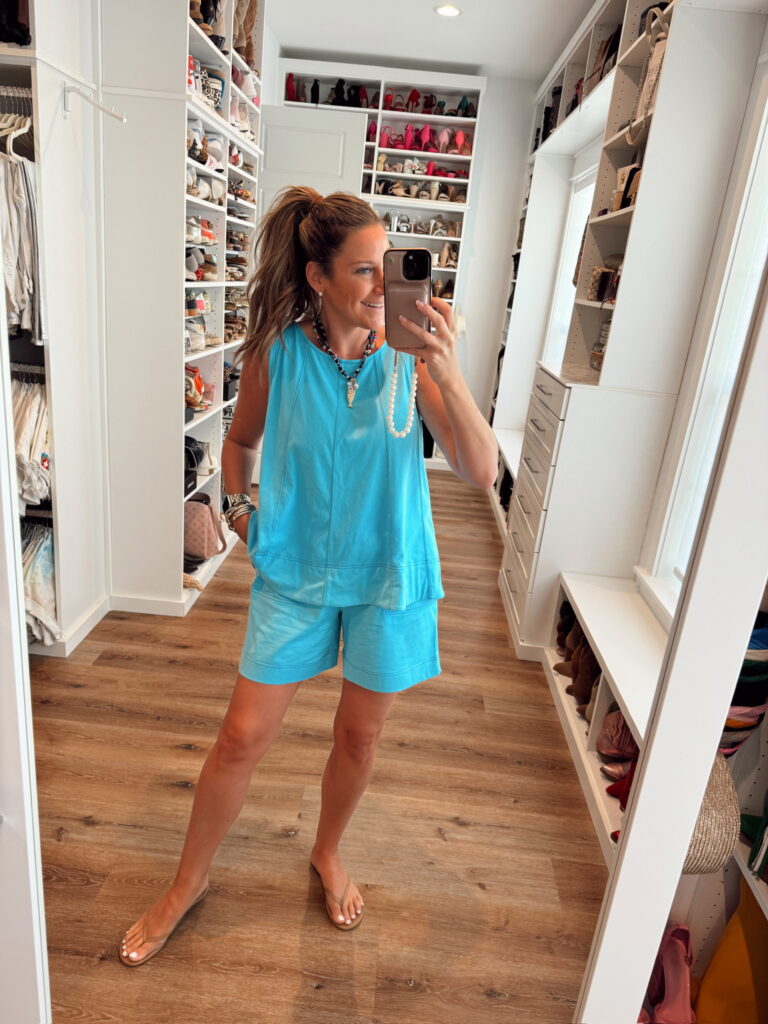 Embracing this warm January weather and wearing some of my new spring clothes! Loving this denim set in a small – fits tts. Shop the look here!