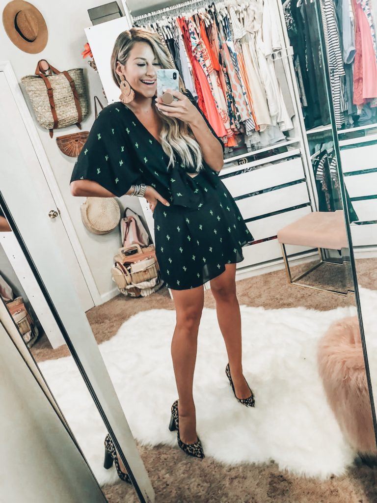 Buddy Love Connie Dress wearing size medium with leopard print heels and similar statement earrings
